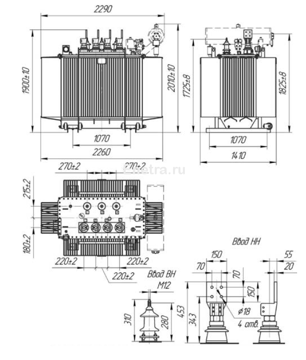 ТМГ-СЭЩ - трансформатор герметичный без расширителя. Регулировка напряжения без нагрузки.