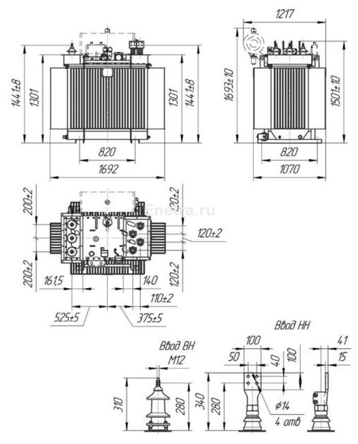 ТМГФ-СЭЩ - трансформатор герметичный без расширителя, с фланцами на крышке для бокового присоединения шин. Регулировка напряжения без нагрузки.